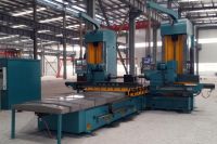 數控五軸雙立柱鏜床為臥式雙面布置,主要適合加工對稱度要求高的孔的鏜削加工。并能附帶高速銑削、 低速銑削、鉆孔等功能。工件放在專用移動工作臺上,左右分別兩個立柱帶可橫向移動的滑臺,滑臺上放動力頭。移動工作臺、橫進滑臺及立柱滑臺由數控系統控制,主軸轉速通過變頻器調速。該機床由一套五軸數控系統控制,配備兩套懸掛式控制箱,并配可持式手脈。機床配有獨立的液壓站,能夠實現立柱滑臺的自動鎖緊。運動部分采用滾珠絲杠連接。機床配有獨立的電器柜,并有風冷裝置。